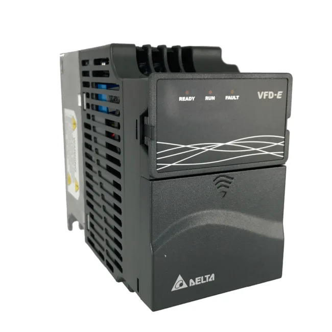 The Delta E Series VFD 1 Phase drives – VFD002E21A, VFD004E21A, VFD007E21A, VFD015E21A, and VFD022E21A – offer reliable and economical motor control solutions with robust performance and built-in features. Designed for small machinery and automation systems, these drives provide effective control of 3-phase motors using a 1-phase 230V AC input.