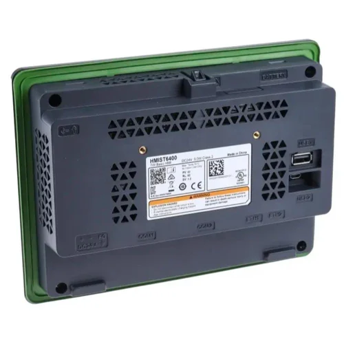 The HMIET6400 from Schneider Electric is a compact 7-inch ET6 Human Machine Interface built for industrial environments. It features a resistive touchscreen with clear visibility and a robust IP65-rated front for protection. Moreover, the HMI runs on an 800 MHz ARM Cortex-A8 processor, offering fast performance in real-time control applications.